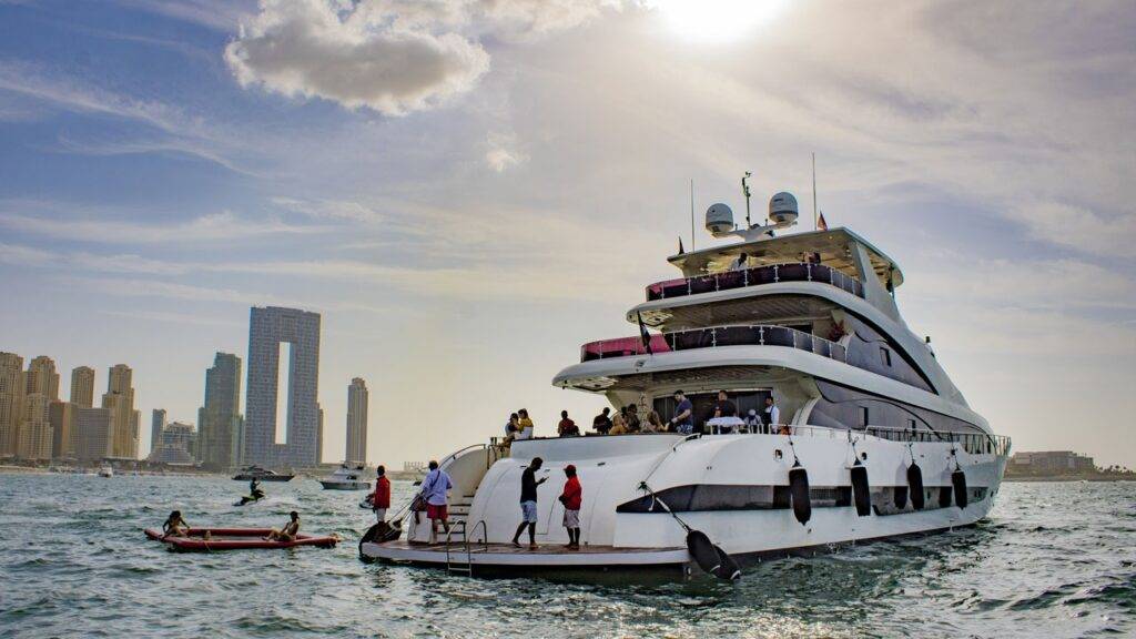 • Sunset Yacht Soirée – Set sail on a luxury yacht, indulge in a barbecue dinner, groove to live beats, and bask in the golden glow of the Arabian Gulf.